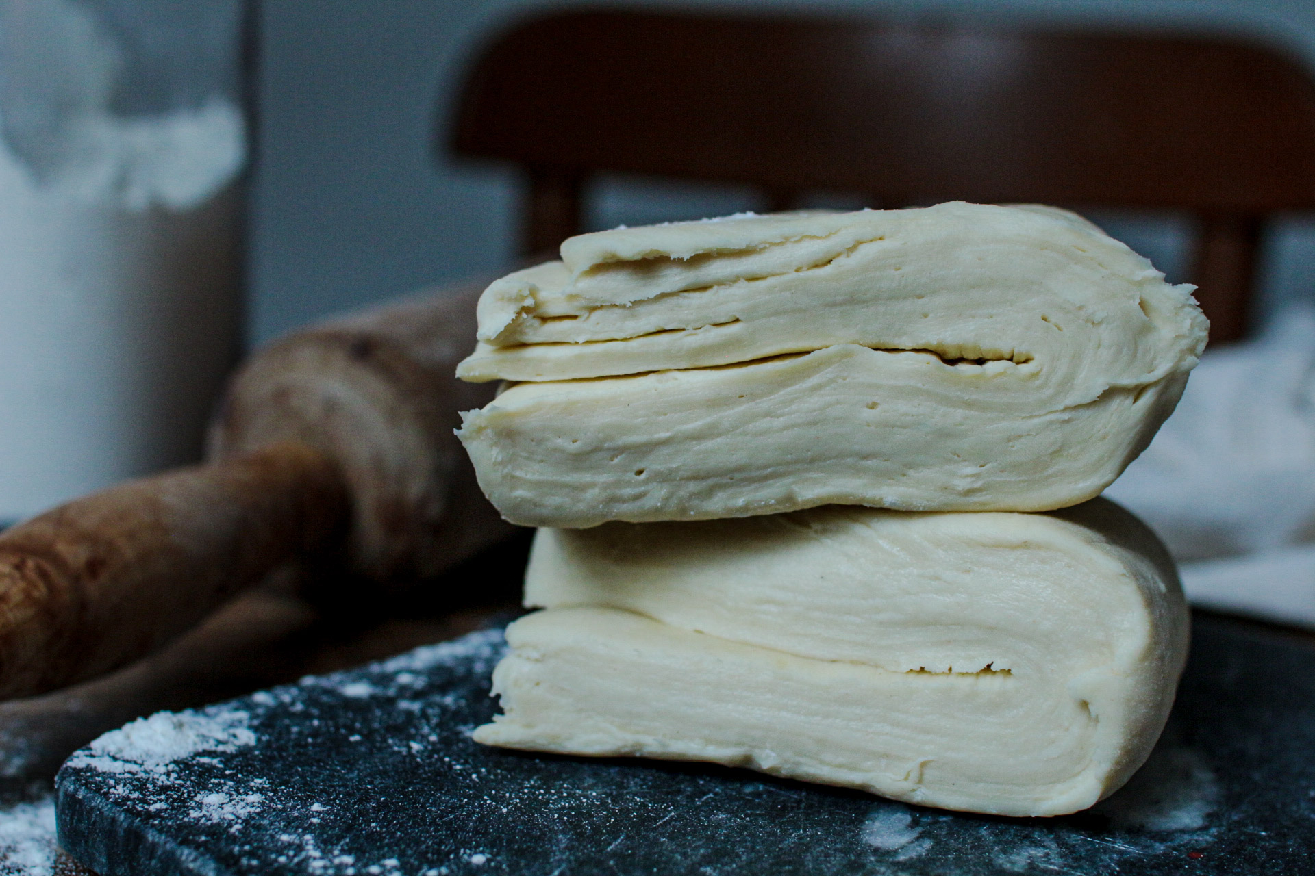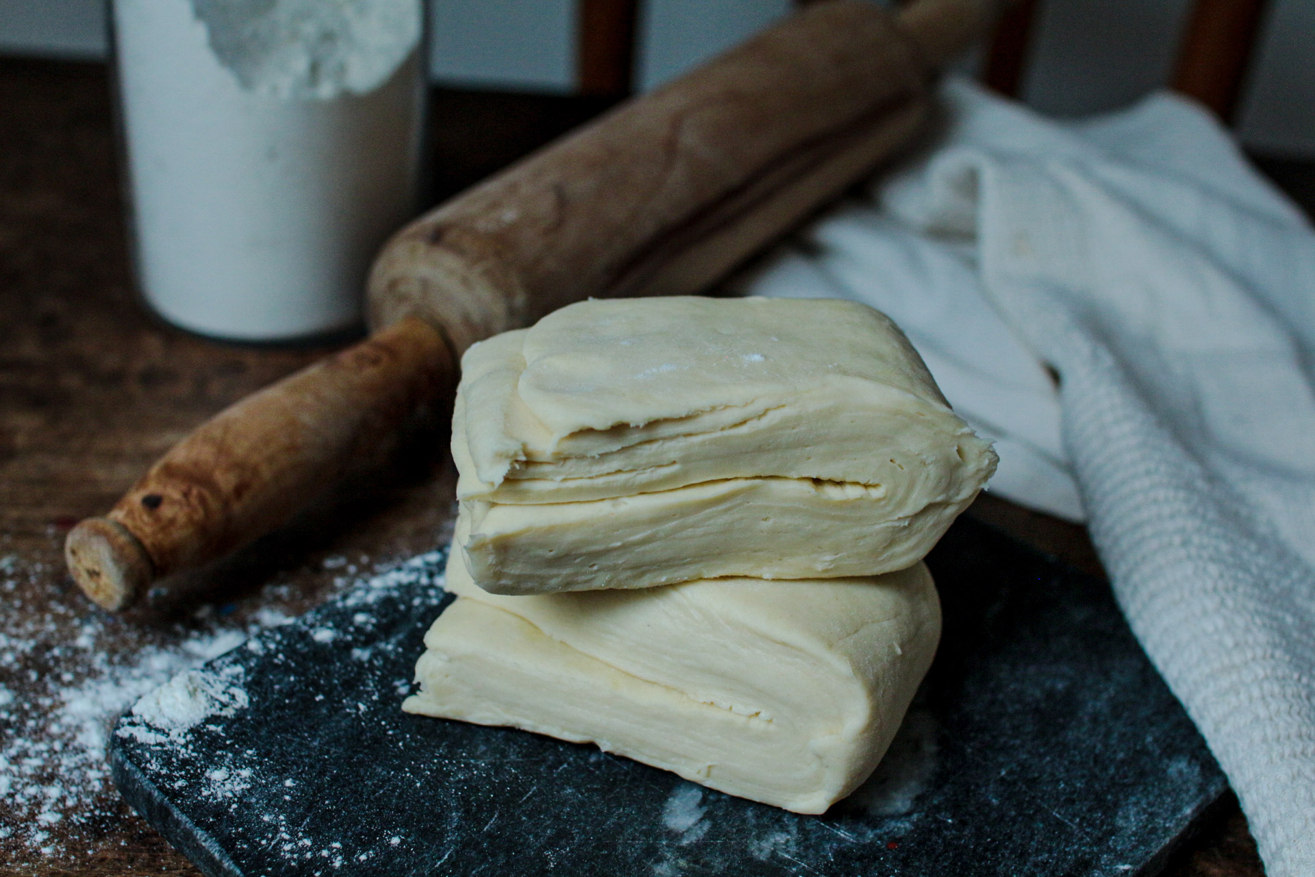 La quantité de beurre est également moins importante que pour une pâte feuilletée classique.