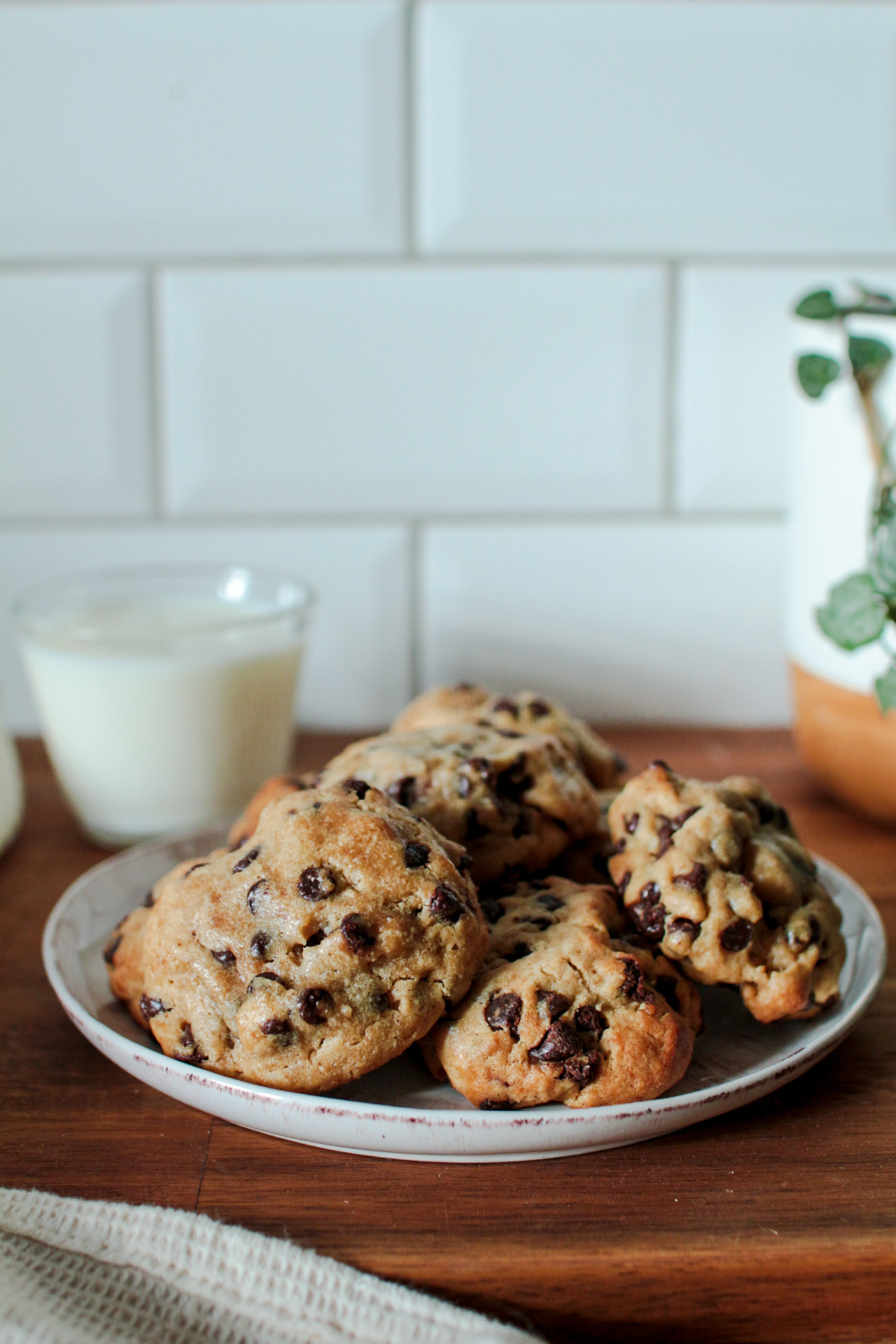 Jusque là j’ai toujours eu une préférence pour les cookies chewy : ceux qui collent un peu au dents, généralement tout plats, avec une texture caramélisée. Même si leur texture est super, ils ont souvent l’inconvénient d’être extrêmement sucrés.