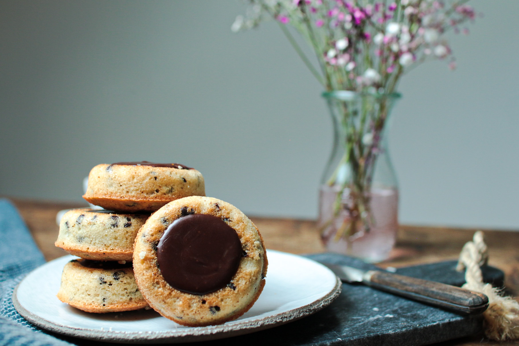 Les vrais tigrés de Cyril Lignac se font dans des mini moules à Kouglof. Mais on n’a pas tous des moules à Kouglof dans nos placards (moi la première), donc à défaut vous pouvez utiliser des moules individuels, l’important est d’avoir un trou au milieu. Pour ma part j’ai utilisé des moules à donuts en silicone.