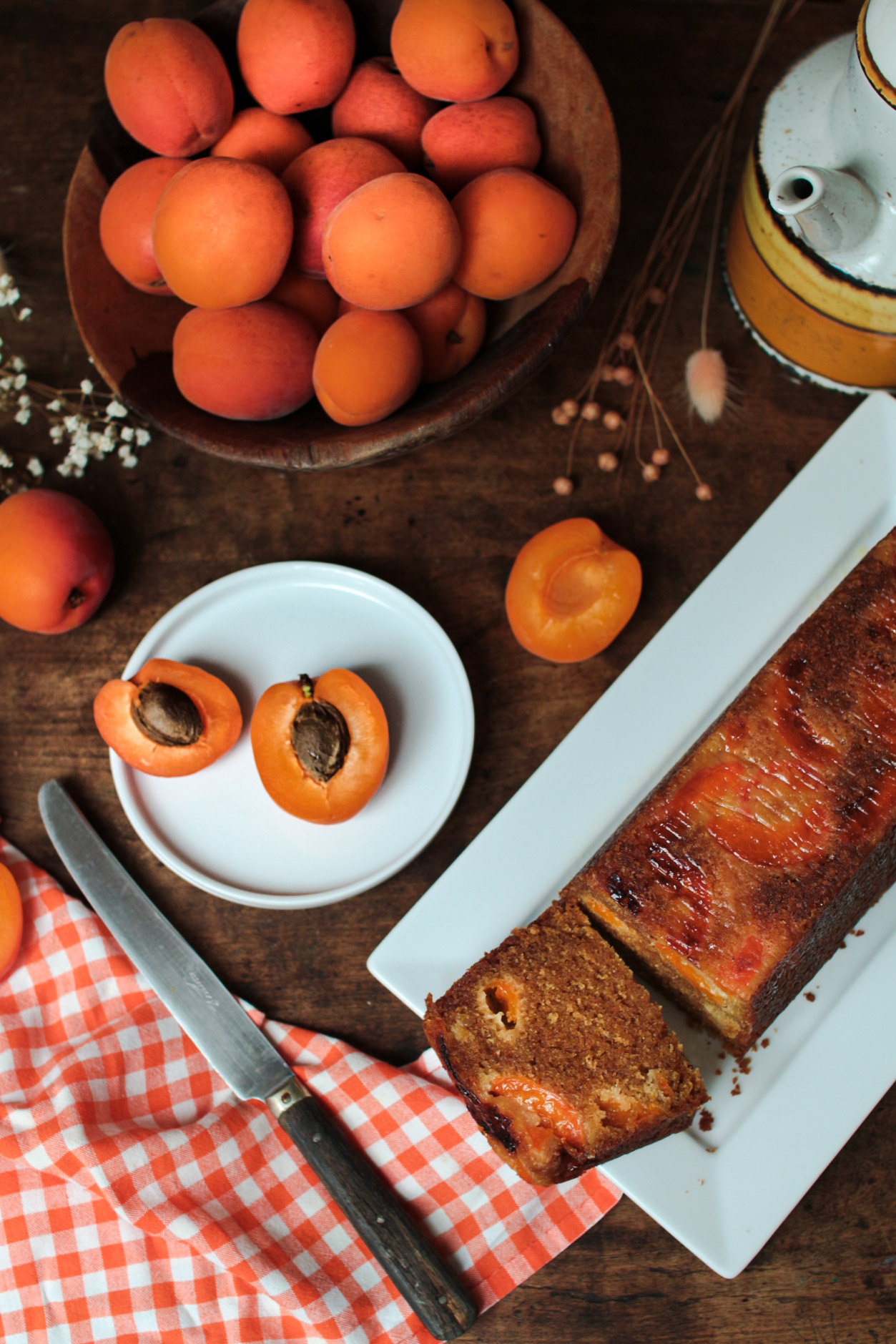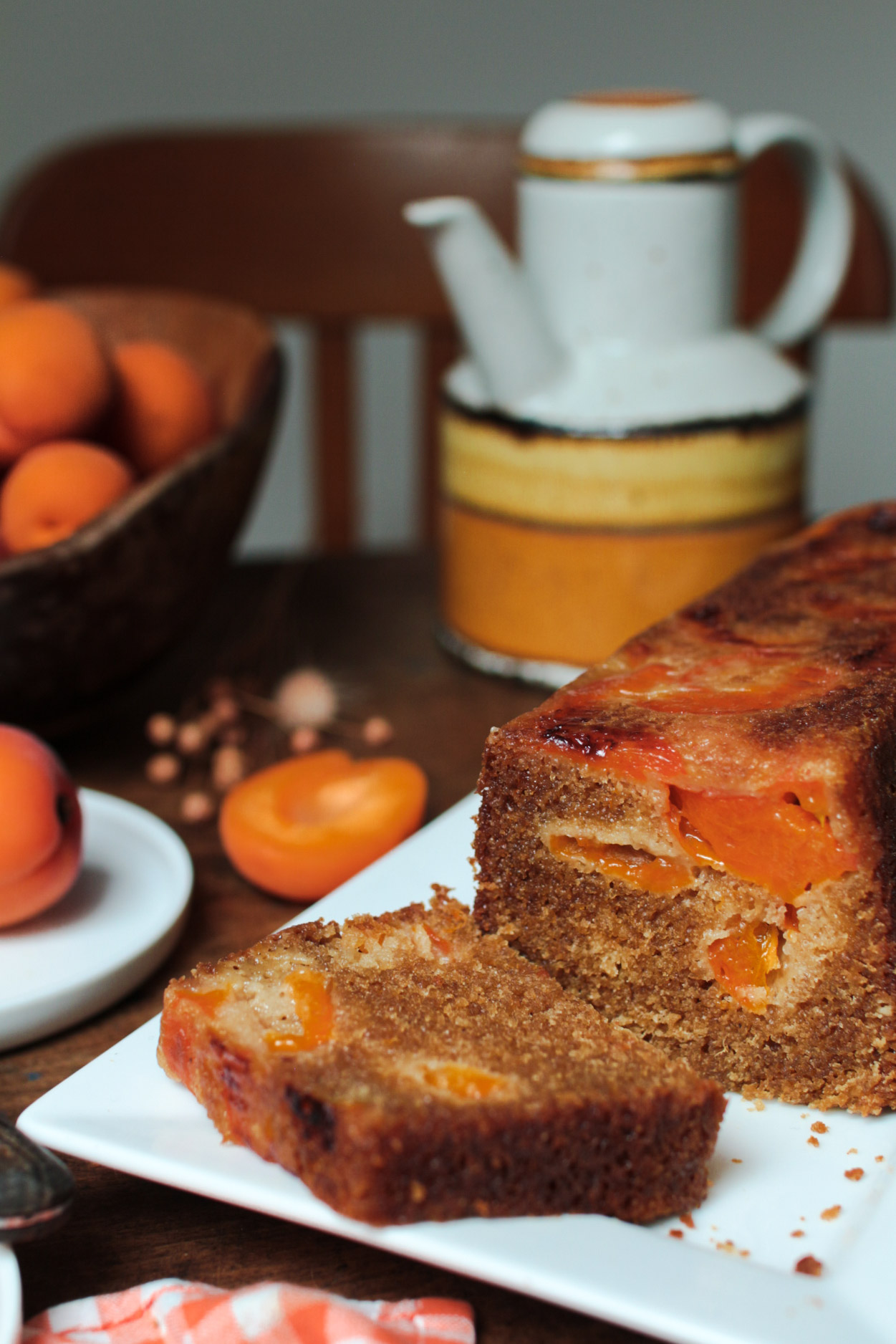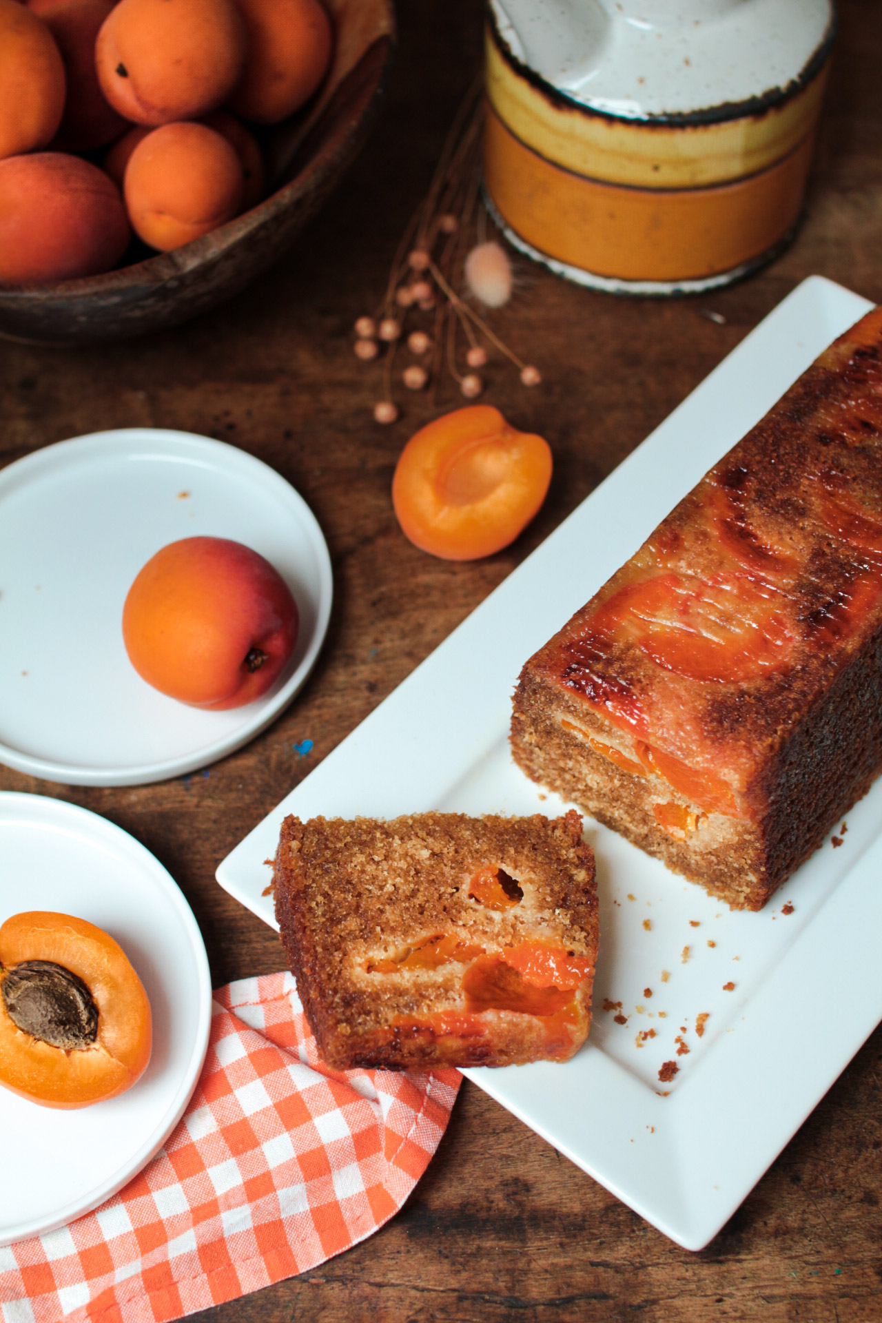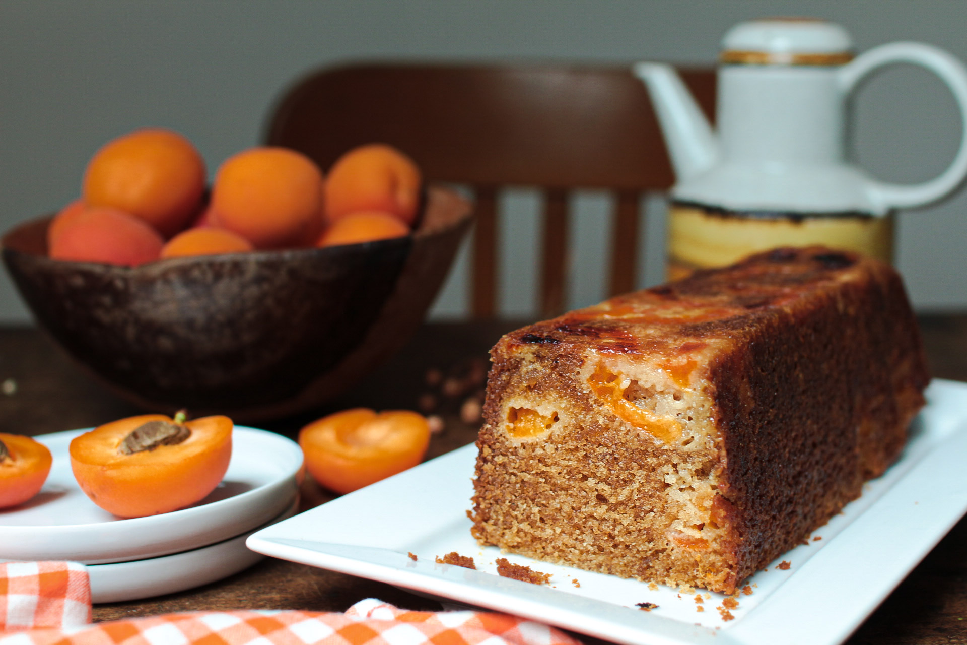 La saison des abricots est en train de débuter pour mon plus grand bonheur ! Les fruits d’hiver font place aux fruits d’été sur les étals et il faut dire que j’attendais ce moment avec impatience : l’hiver m’a semblé tellement long avec ces températures hivernales qui s’éternisent, que j’ai l’impression que les fruits d’été n’arriveraient jamais. Le point positif c’est qu’il ne fait pas encore trop chaud pour utiliser le four, donc pour une fois, j’ai envie de préparer toute une multitudes de gâteaux aux fruits d’été ! Et puis en plus, comme il pleut et il fait froid tous les weekends de juin, ça me laisse du temps pour préparer de nouvelles recettes… Tout ça pour dire que cette semaine, j’ai découvert une nouvelle recette incroyable : ce merveilleux gâteau aux abricots. J’ai rarement mangé un gâteau aussi moelleux je crois. Il est juste parfait : délicieusement acidulé et avec un bon goût d’épices. On peut le préparer avec plein de fruits différents, à savoir qu’en fonction de l’acidité des fruits, on peut modifier la quantité de sucre de ce gâteau.