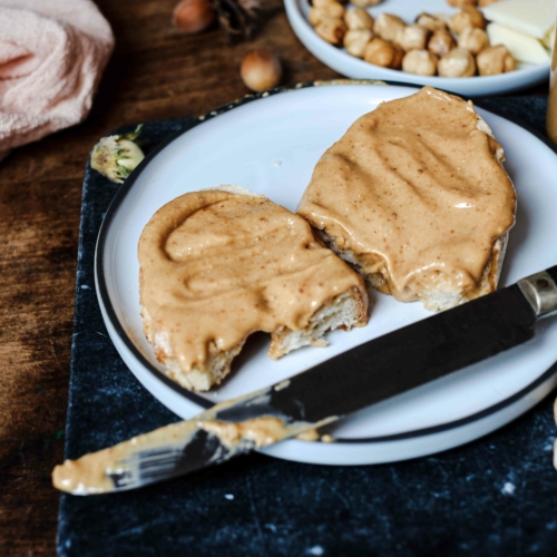 Pour réaliser cette pâte à tartiner, il suffit donc de torréfier et mixer vos noisettes jusqu’à obtenir une pâte puis d’ajouter simplement les autres ingrédients. Tout comme ma recette fétiche de pâte à tartiner aux noisettes et chocolat au lait (si vous ne la connaissez pas c’est juste la meilleure recette du monde selon moi !)