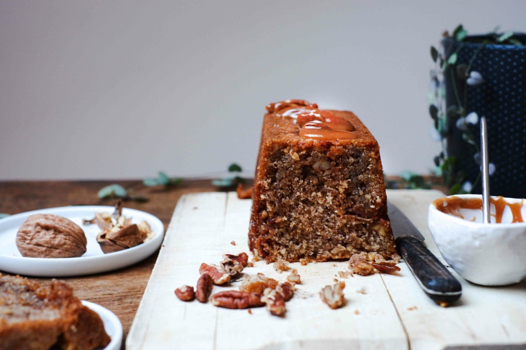 Mais quelle belle idée ce cake avec noix et noix de pécan… et la touche gourmande de caramel !