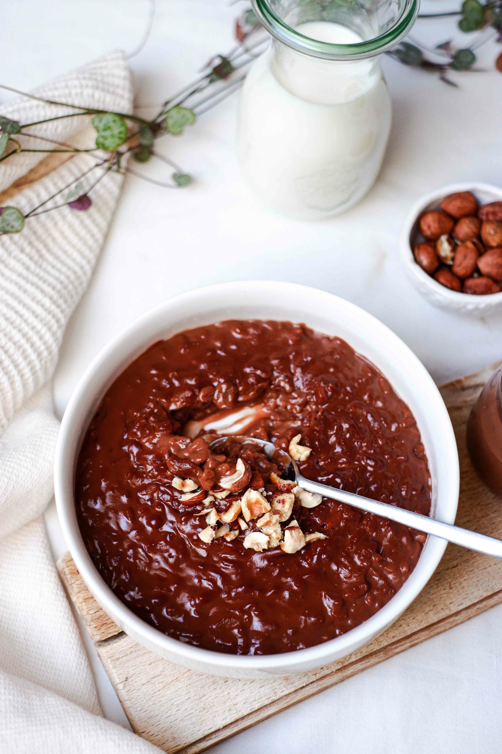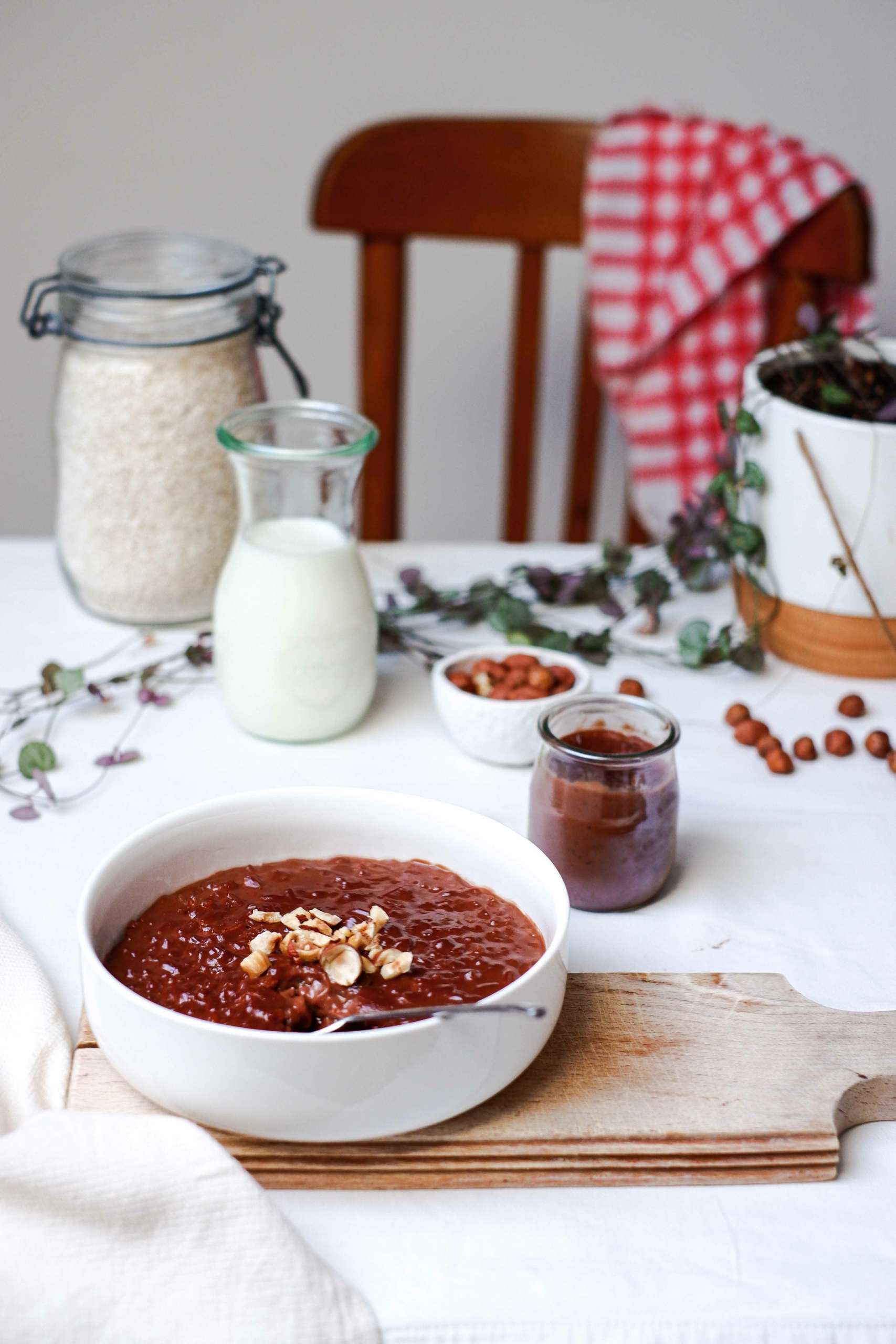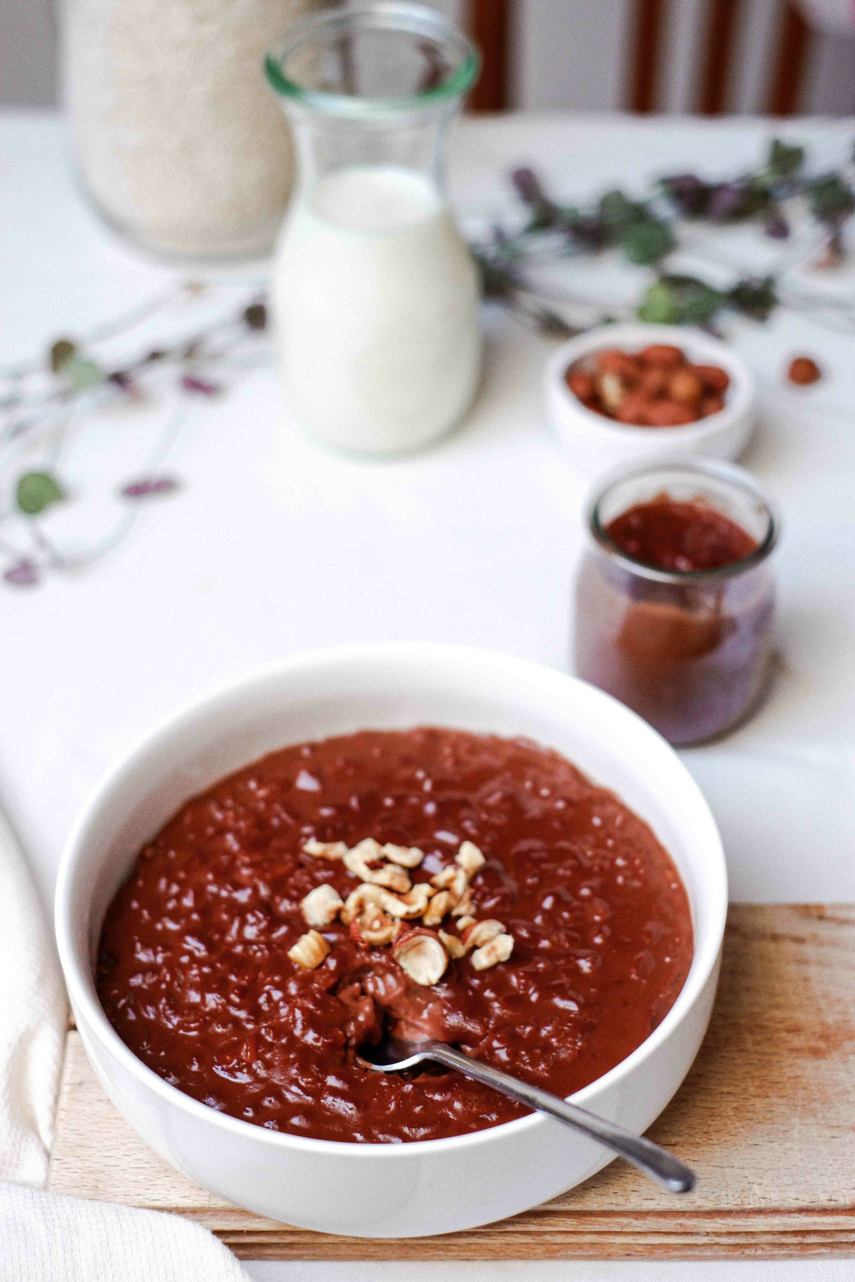 Si vous aimez le riz au lait et que vous cherchez des variantes pour changer un peu, vous devriez adorer cette recette de riz au lait au chocolat ! Le riz au lait est LE dessert régressif par excellence. Il est non seulement très facile à faire, mais en plus, il ne nécessite que quelques ingrédients. Cette recette est adaptée de ma recette fétiche et j’adore la faire et l’accompagner de quelques noisettes grillées.