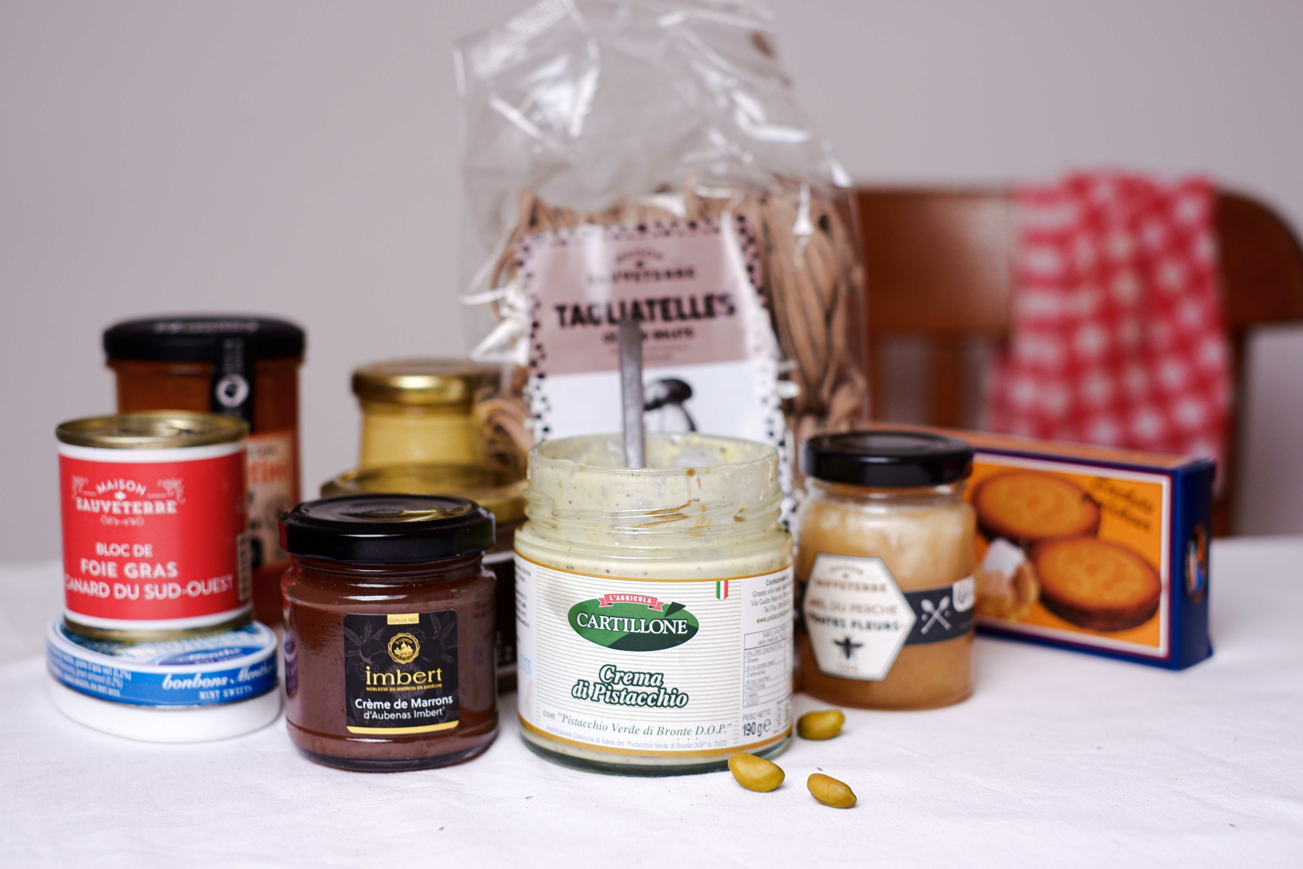 Le site propose aussi de très jolis et très gourmands panier garnis que j’ai découverts en même temps que cette confiture. J’ai eu la chance d’en recevoir un à la maison : le panier Tour de France gastronomique, composé de nombreux produits comme du miel, de la crème de marron, des tagliatelles aux cèpes, du foie gras, de la confiture, des canelés, de la tapenade, et bien d’autres encore (la crème de pistache ne faisait pas partie du panier mais m’a été offerte en plus également et elle était divine !). J’ai vraiment apprécié la qualité des produits proposés et la quantité de produits contenus dans le panier !