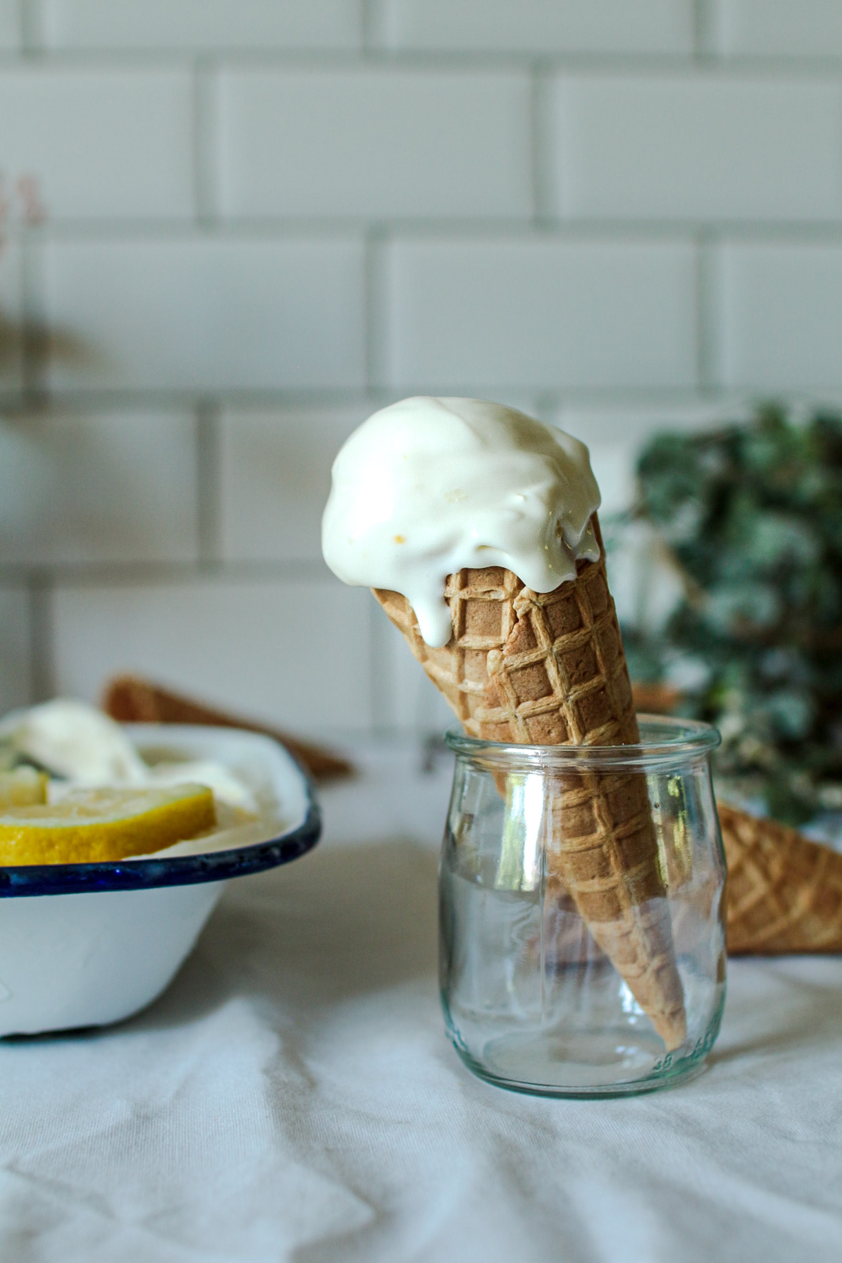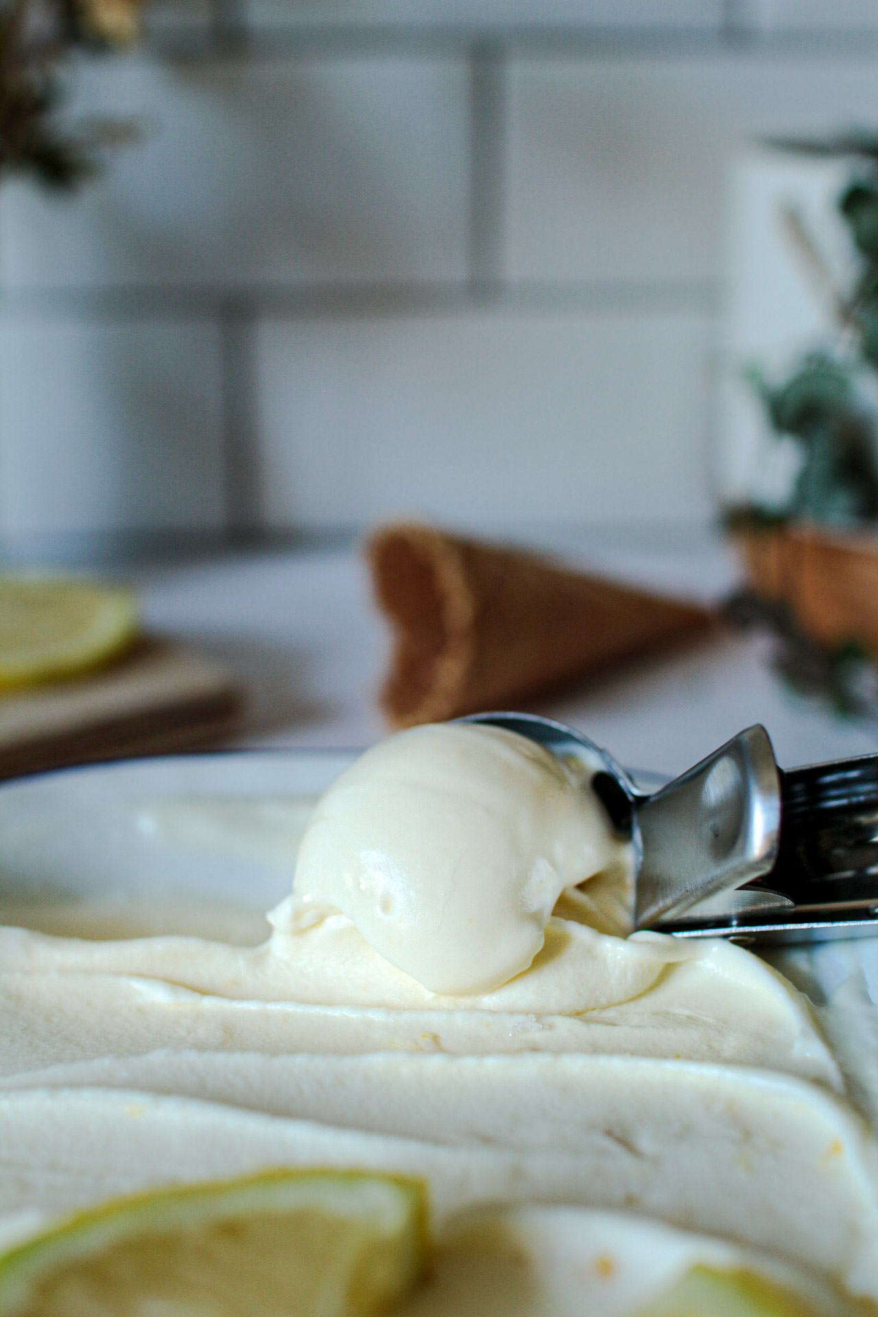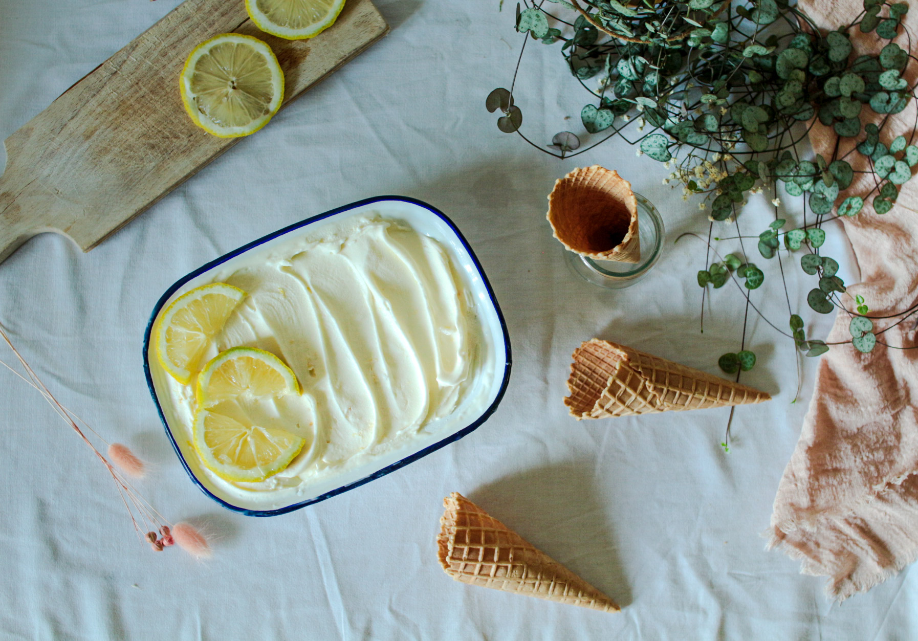 J’ai déjà fait plusieurs glaces au citron sur le blog. Des esquimaux citron-menthe, un délicieux sorbet au citron que je refais à toutes les occasions, et une glace au citron et au lait ribot à laquelle j’adore rajouter des morceaux de tarte ! Jusqu’à récemment j’ai toujours cru que le secret d’une très bonne glace passait forcément par la préparation d’une crème anglaise et l’ajout d’oeufs pour l’onctuosité, mais j’ai découvert de délicieuses glaces ultra-faciles à faire, sans oeufs et sans forcément de cuisson, qui m’ont poussée à me pencher un peu plus sur la question. C’est le cas de cette fabuleuse glace au Nutella ou encore de ma glace au café sans sorbetière (qui est probablement la recette que j’ai le plus faite et refaite). Pour ces deux glaces, le secret réside dans l’ajout de lait concentré. Et comme pour ma glace au café, la facilité de cette glace au citron est dûe à l’ajout de lait concentré sucré.