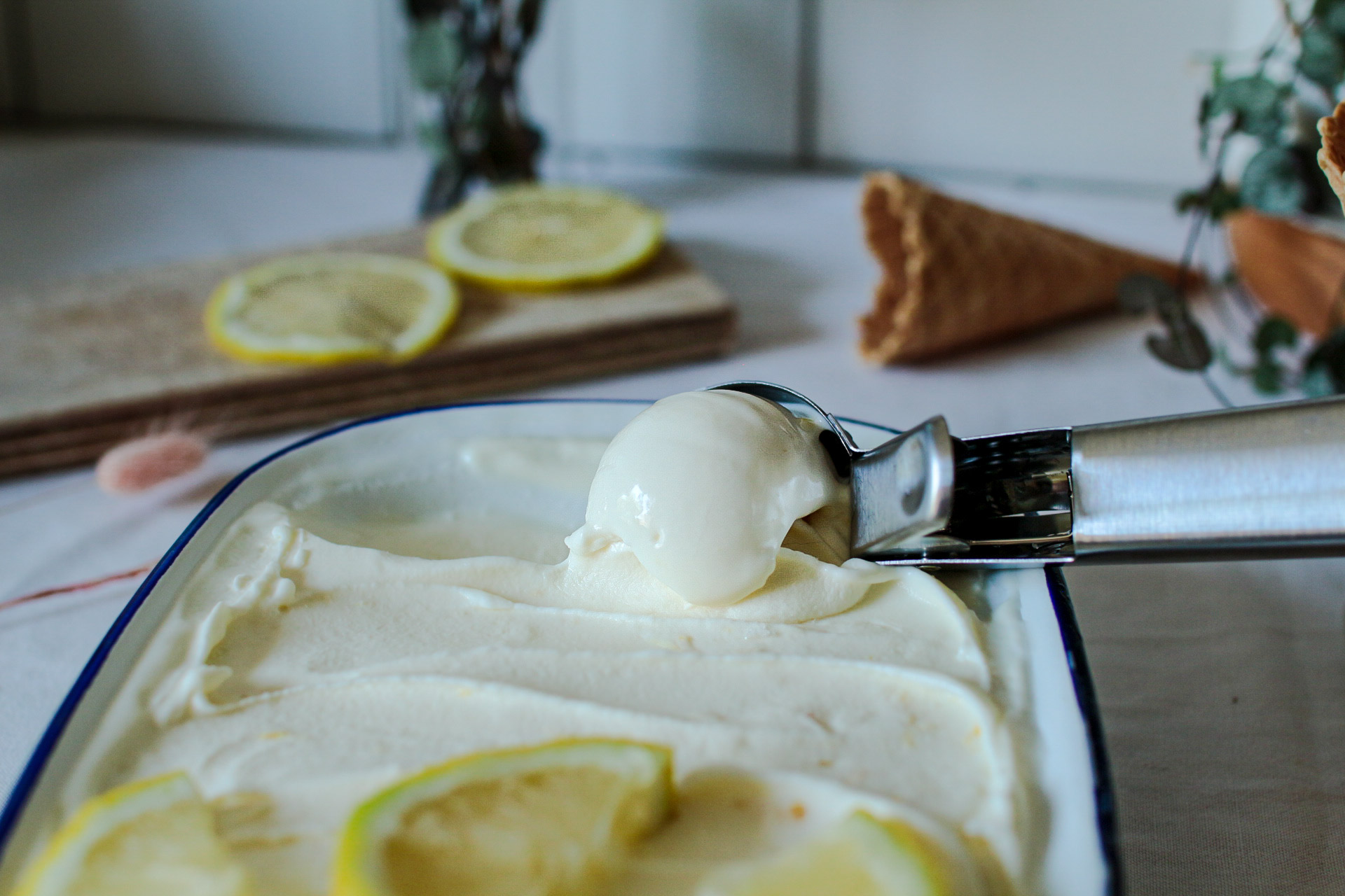 Si vous me suivez depuis un moment, vous saurez que les glaces ici, c’est toute l’année, même en hiver ! Je ne compte même plus les recettes de glaces sur le blog, je pense que je pourrais même convertir ce blog en blog spécialisé sur les glaces^^ Il y en a pour tous les goûts : des faciles, des rapides, des plus complexes, avec sorbetière, sans sorbetière… et cette fois je reviens avec une recette de glace au citron crémeuse et onctueuse vraiment très simple à préparer !