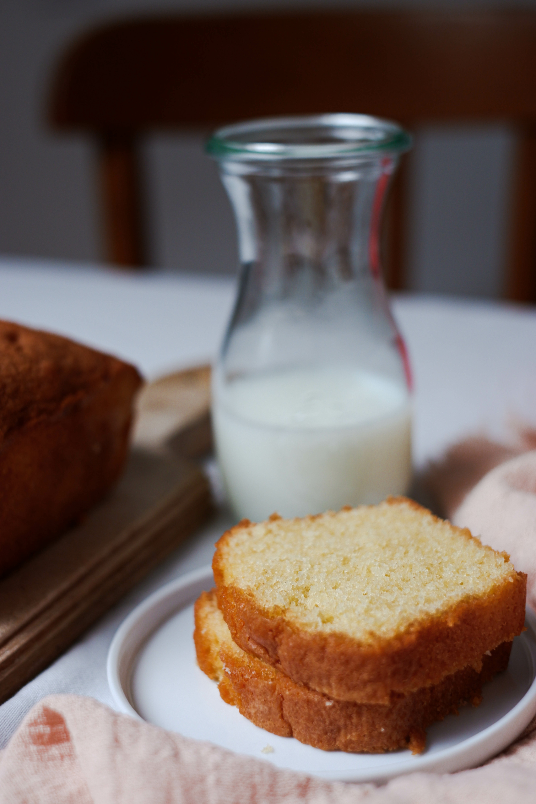 Voici donc ma recette de quatre-quarts héritée de ma grand-mère pour un petit moule à cake de 21 cm.