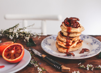 Pancakes au caramel et noix de pécan